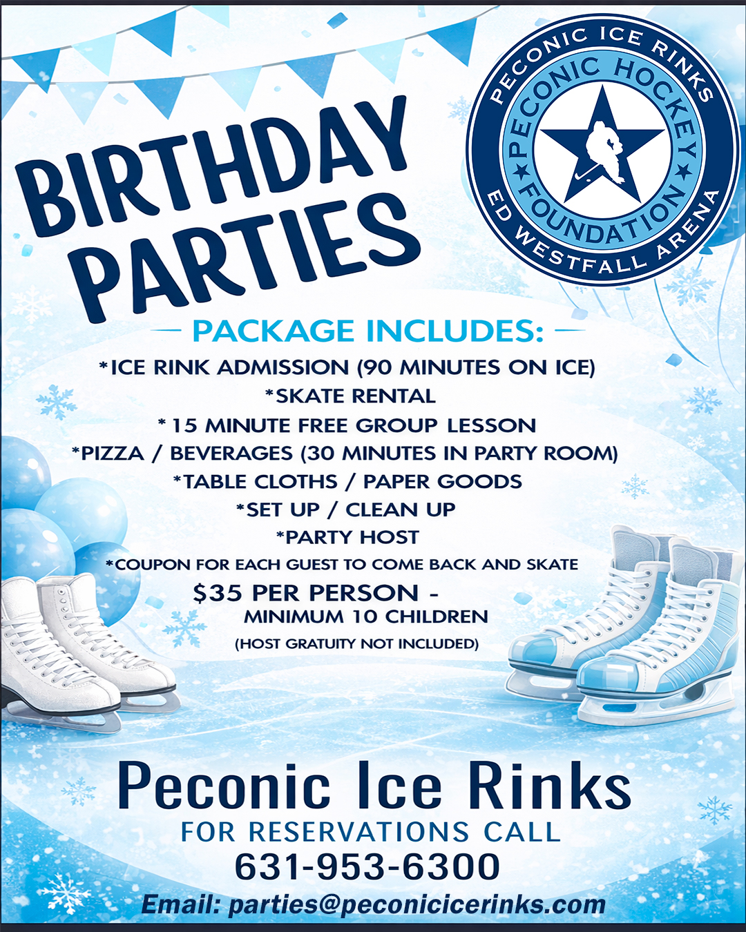 Contact Us at parties@peconicicerinks.com