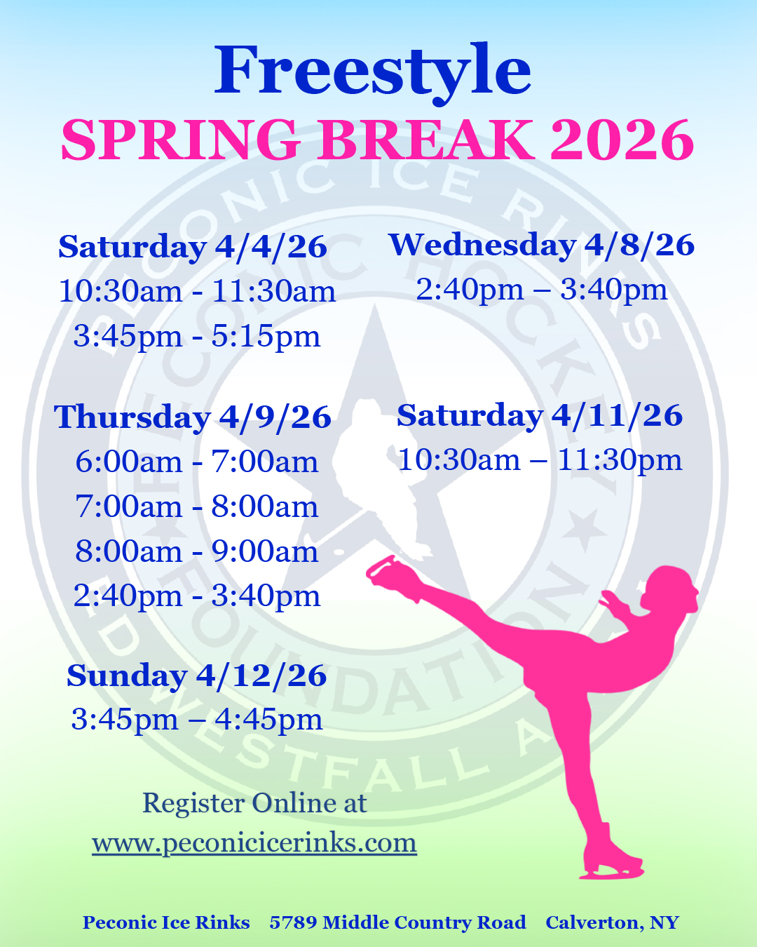 Take your figure skating skills to the next level with our Freestyle Skating sessions! These open practice times are designed for skaters of all levels to work on jumps, spins, and routines in a focused and supportive environment.